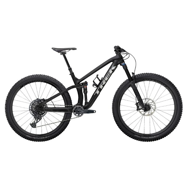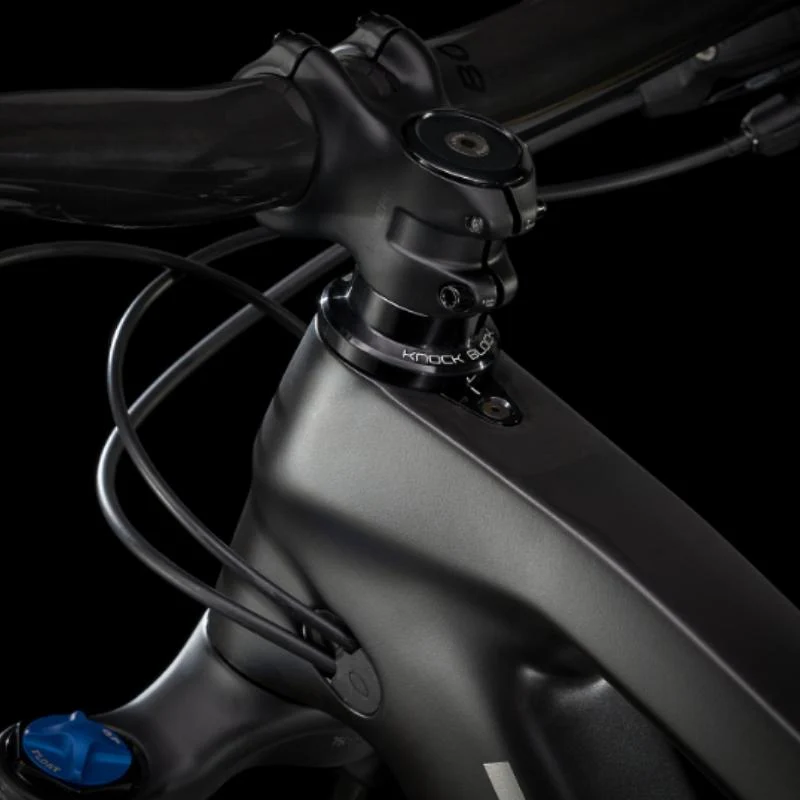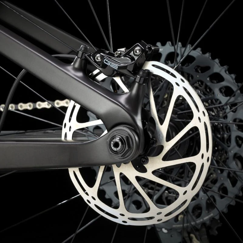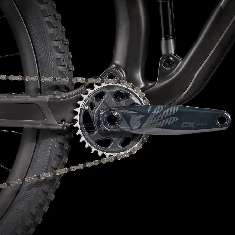 Un cuadro de carbono ligero y rígido con almacenamiento interno, horquilla FOX Performance 36 con montantes más anchos para mayor rigidez en terrenos accidentados y un amortiguador RE: aktiv con Thru Shaft. Tren motriz SRAM GX Eagle con un equipo de escalada de 52 dientes que ahorra piernas, además de ruedas de carbono Bontrager con un buje Rapid Drive de 108 dientes para un acoplamiento instantáneo.