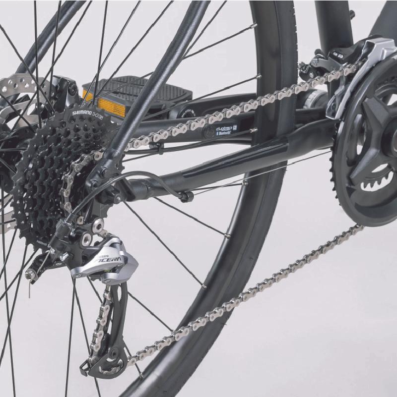 Un cuadro de aluminio liviano, una horquilla de carbono, frenos de disco hidráulicos de montaje plano Shimano para potencia de frenado en todo clima, una transmisión Shimano de amplio rango de 18 velocidades que es ideal para conquistar colinas, soportes adicionales para accesorios como portabultos y guardabarros, pinchazos neumáticos resistentes, un manillar que absorbe las vibraciones y puños ergonómicos, y un SILLIN diseñado para mujeres.